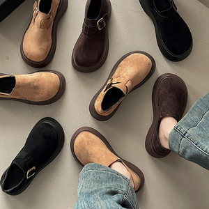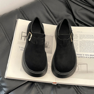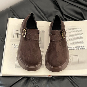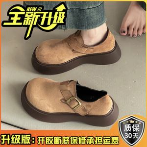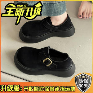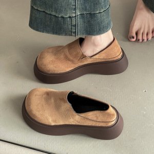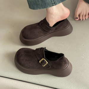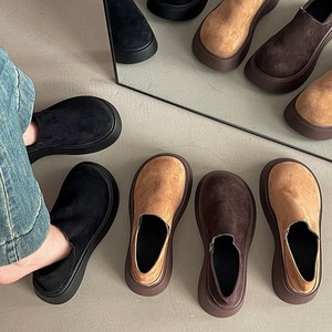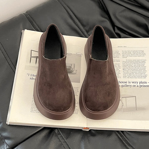 绒面经典厚底增高勃肯鞋秋冬季时尚复古风懒人一脚蹬女生乐福鞋子