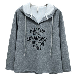 大码200斤胖MM休闲百搭印花字母连帽长袖上衣洋气女装帽衫8254