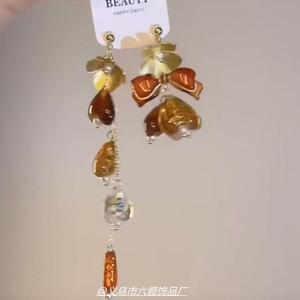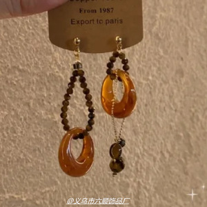 5G入秋 新中式复古串珠流苏耳环女秋冬2025新款不对称高级感耳饰
