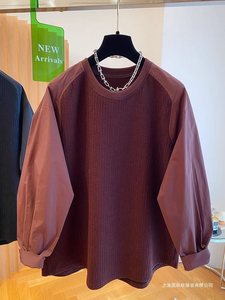 大码衬衫袖子拼接卫衣女2025秋装新款胖别致显瘦洋气减龄上衣潮
