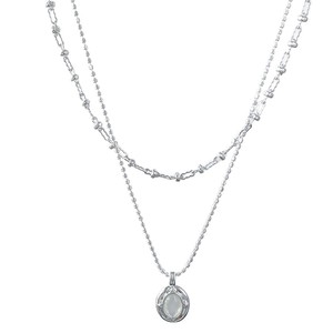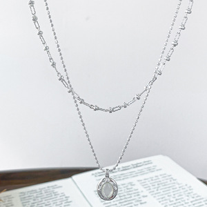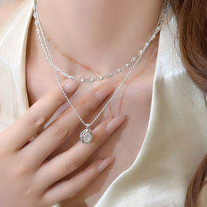 韩系树脂椭圆形吊坠双层毛衣链冷淡风气质锁骨链小众高级感项链女