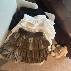 芭蕾风百褶短裙女秋季松紧高腰显瘦休闲防走光a字蓬蓬蛋糕半身裙