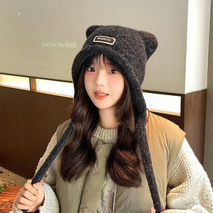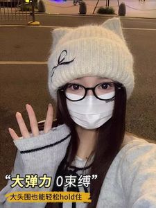 2025新款秋冬护耳保暖加厚针织毛线帽小众刺绣蝴蝶结休闲百搭冷帽