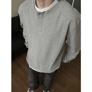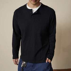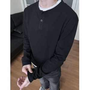 美式复古长袖男式亨利衫t恤百搭潮流纯色外穿亨利领男士打底