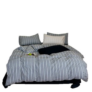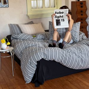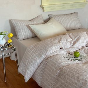 日式侘寂风复古格纹全棉色织水洗提花四件套高级感床品被套床单