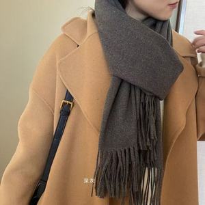 新款韩系仿羊绒纯色女围巾保暖男女流苏简约氛围感围脖披肩围巾