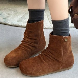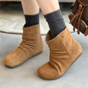 内增高堆堆靴女靴2025秋季新款百搭透气休闲一脚蹬圆头韩版短靴女