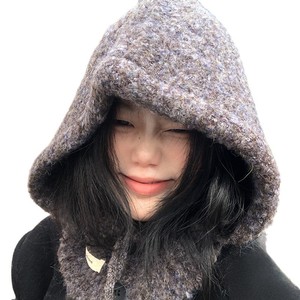 蓝色巴拉克拉法帽女秋冬百搭帽子围巾一体羊毛混纺针织保暖护耳帽