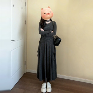 法式灰色针织套装连衣裙子女秋冬季2025年新款小个子香风气质长裙