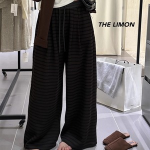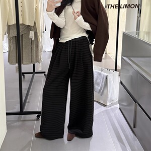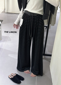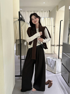 THE LIMON柠檬绿茶2025秋季百搭高腰抽绳条纹休闲裤气质休闲裤子