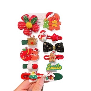 新款儿童圣诞节发夹圣诞老人发卡蝴蝶结套装金色发饰外贸跨境