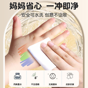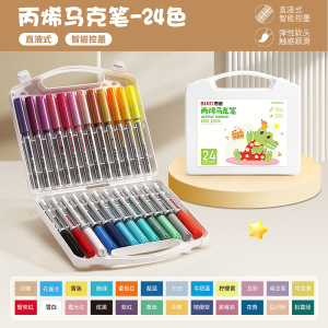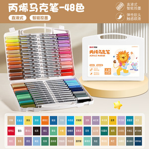 思进超大容量儿童绘画用笔无毒可水洗软头小白盒直液式丙烯马克笔