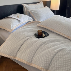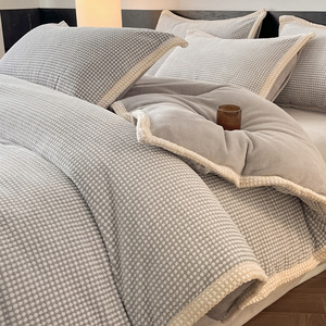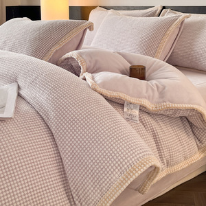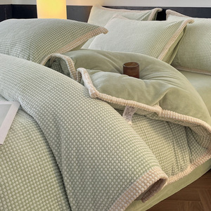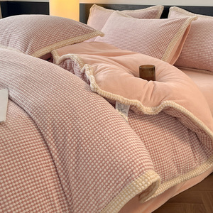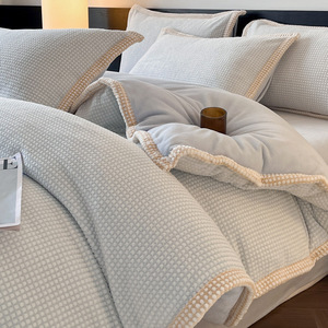 加厚牛奶绒阳离子提花包边被套毯四件套家用保暖冬季厚珊瑚绒床单