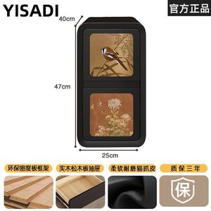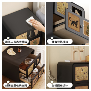 中古风床头柜实木家用卧室2025新款轻奢高级感新中式黑色床头柜