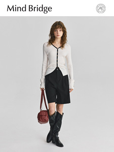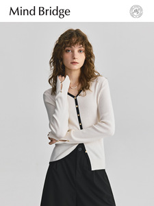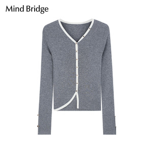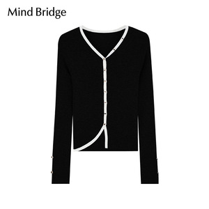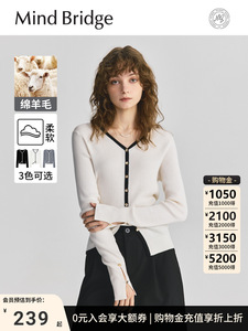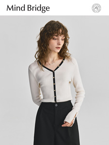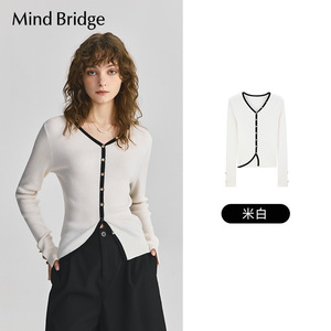 Mind Bridge【绵羊毛】2025秋法式撞色修身开衫女士设计感V领针织