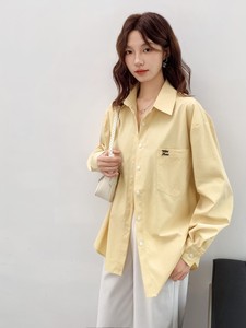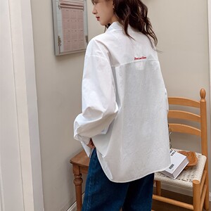小个子字母绣花翻领衬衫女新款宽松休闲气质通勤百搭衬衫上衣女