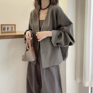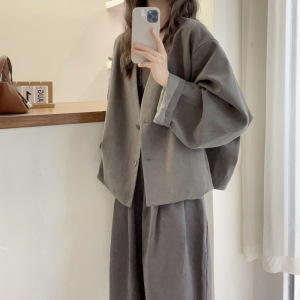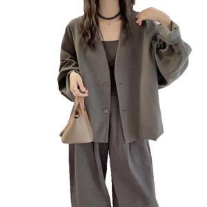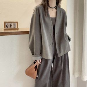 2025春秋新款英伦风V领通勤外套女宽松显瘦潮流气质减龄