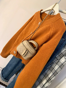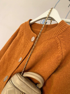 南瓜橘色毛衣外套女冬季外穿高级感慵懒软糯针织开衫加厚短款上衣
