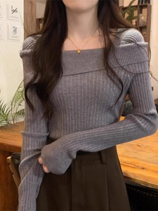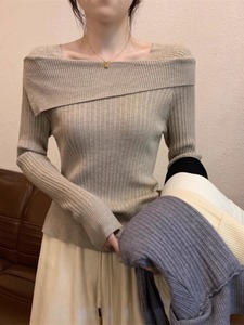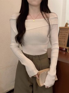 设计感一字肩针织衫女显瘦秋冬新款打底衫内搭毛衣小众高级感上衣