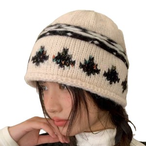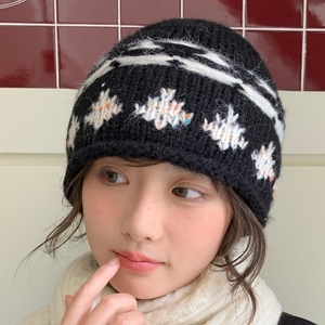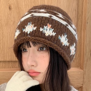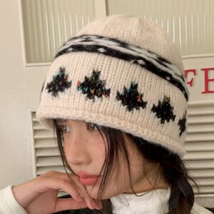 韩系复古提花针织包头帽女秋冬季显脸小卷边冷帽保暖护耳毛线帽子