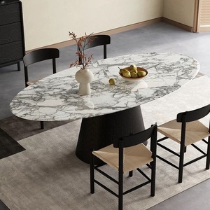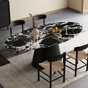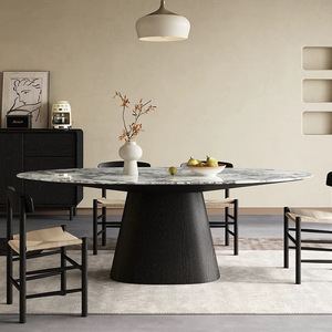 法式轻奢复古大理石餐桌家用中古风大花白实木椭圆形饭桌子