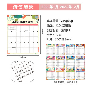 亚马逊跨境2026挂历yo线圈墙面装饰自律打卡月历定制图案创意日历