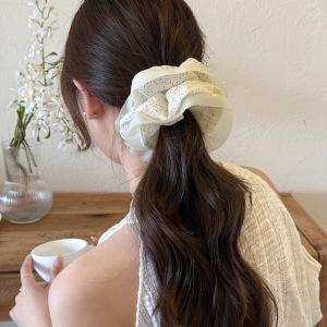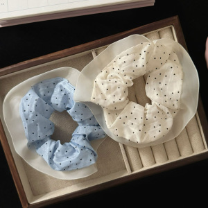马尾发饰韩系时尚花边简约发绳少女波点批发新款蓝色饰品大肠发圈