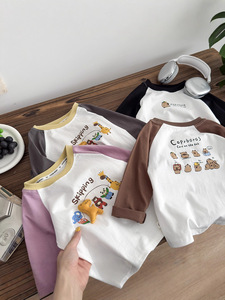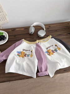 儿童立体玩偶纯棉插肩T恤男童韩版休闲套头打底衫女童内搭童装