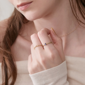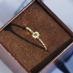 凰谨珠宝 日系简约清新甜美天然橄榄石戒指秋新款 925银镀金戒子