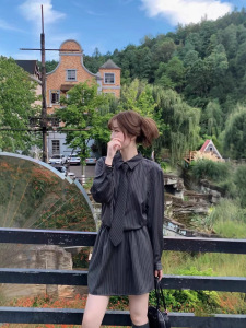 2025秋季新款设计感时尚百搭显瘦舒适可拆领带灰色连衣裙