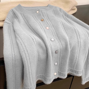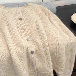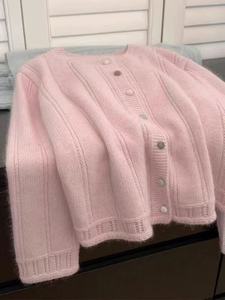 小香风浣熊绒针织开衫女春季春秋慵懒风软糯短款上衣毛衣外套外穿