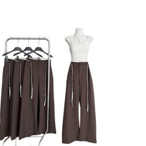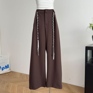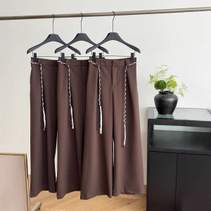 装饰腰绳立裁折叠捏褶宽松设计休闲弧形弯刀阔腿长裤2025新款