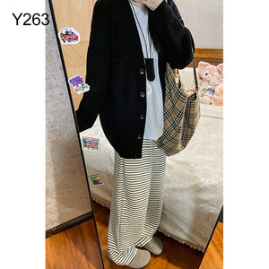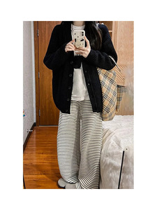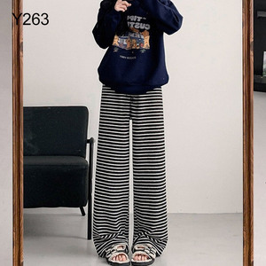 修身显瘦孕妇裤子秋季外穿条纹阔腿裤大码胖mm孕期托腹不勒休闲裤