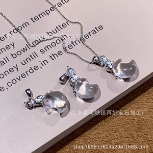 天然白水晶月亮立体猫吊坠S925银镶嵌锁骨链时尚百搭礼物女批发