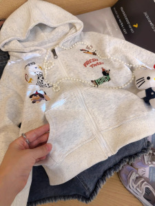 女童卫衣外套秋装新款儿童卡通时髦连帽拉链休闲开衫棒球服潮童装