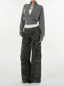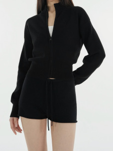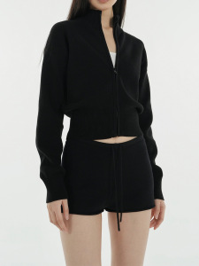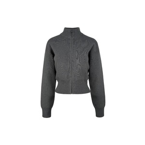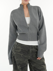 美式秋冬新款百搭显瘦简约立领收腰拉链长袖开衫女装上衣针织外套