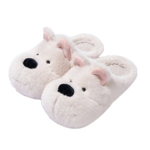 新款可爱卡通狗狗毛绒拖鞋女秋冬季家用月子鞋加绒保暖防滑棉拖鞋