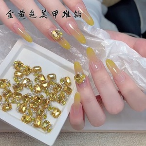 金黄色八角堆钻美甲饰品钻秋冬超闪小方糖堆堆钻球指甲装饰品配饰