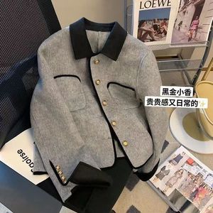小香风短款炸街灰色外套女秋冬季复古高级设计感小众气质长袖上衣