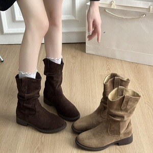 西部牛仔复古短靴子女2025新款夏秋季美拉德草原中筒堆堆靴马丁靴