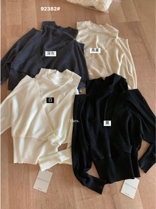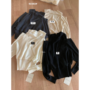 Hers一勺甜秋冬韩系简约气质日常通勤设计感露肩长袖针织衫92382
