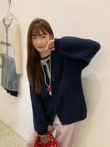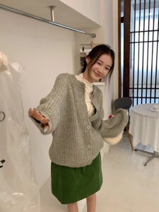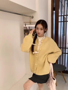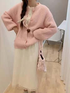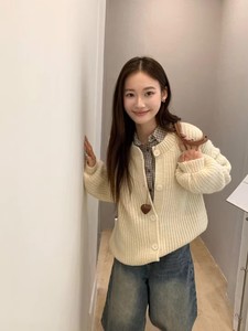 韩系时尚简约圆领针织开衫女2025早秋冬新款百搭宽松显瘦毛衣外套