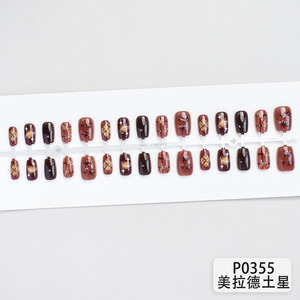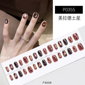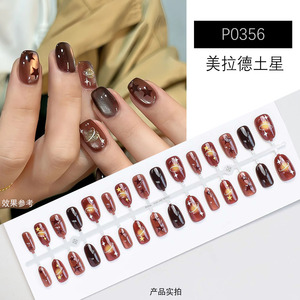 小红书秋日爆款土星绝美显白短款穿戴甲高品质棕色系气质美甲贴片