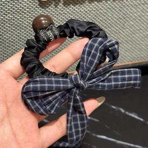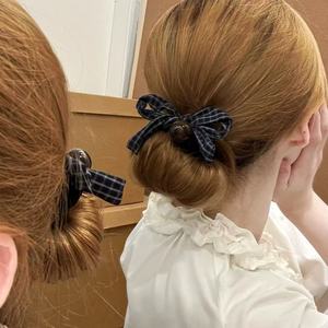 秋冬氛围感韩国同款格子蝴蝶结小肠发圈新款气质扎马尾头绳发饰品