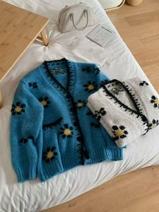 明星同款重工高级感提花加厚保暖艺术感外套湖蓝针织衫上衣