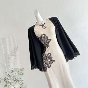 塞纳2025初秋新款新中式无袖旗袍针织连衣裙长裙开衫两件套