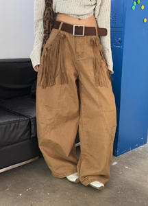 ME KAKAMEE十三行秋美式辣妹流苏阔腿显瘦牛仔裤子(配流苏) C0565