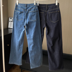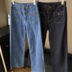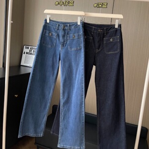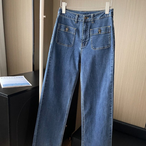 25秋季新款女士简约日常通勤百搭两色立体口袋阔腿牛仔裤0913a9