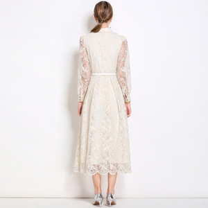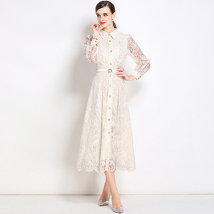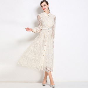 复古法式宫廷风重工刺绣蕾丝连衣裙女2025秋冬精致高级感收腰长裙