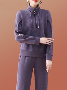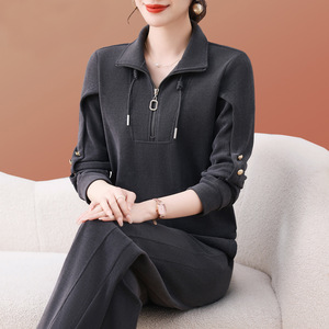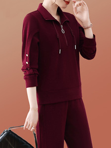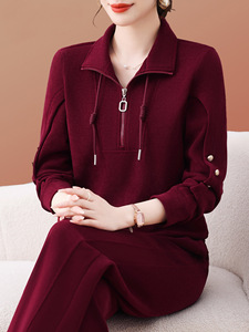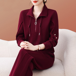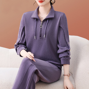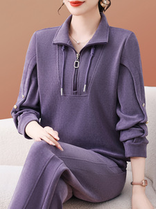 中年妈妈时髦卫衣运动套装春秋2025年新款女士时尚翻领休闲两件套
